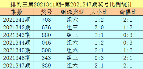 排列三第2021347期回顾:奖号839,奇偶比2:1,大小比2:1,和值20,类型:组六。