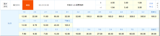 目前竞彩官方开出的数据显示,本菲卡主胜4.00、平局3.60、负1.64。在比分方面,本菲卡1-1为1赔6.5最低,而阿贾克斯1-0为7.50、2-1为7.00、2-0为9.00。总结来看,阿贾克斯整体实力更为出色,竞彩官方给出的支持力度较为合理,考虑到本菲卡主场作战,拥有一定主场优势,因此,阿贾克斯一场小胜,更为值得追捧。