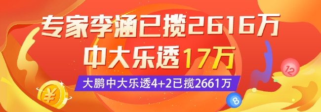 李涵:上期中大乐透三等擒17万,李涵擅长定位与和值走势的分析,此前曾两次中得大乐透一等和一次中得大乐透二等,预测一二等奖累擒2616万!