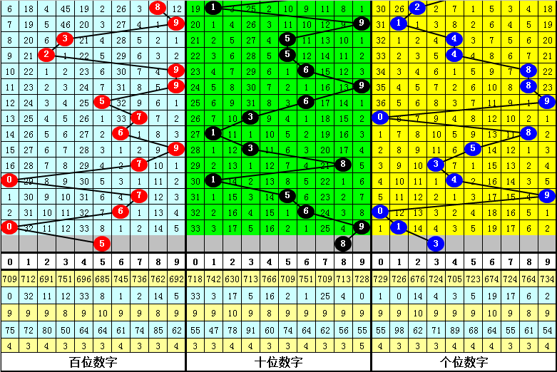 跨度:上期跨度开出9,振幅为3,本期注意跨度走小,防跨度5出现。
