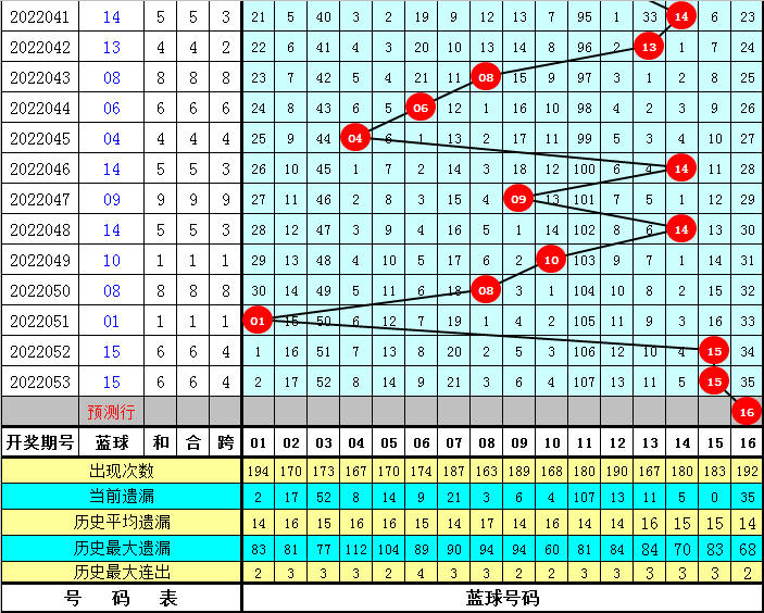 蓝球分析:去年同期蓝球02为2路蓝球,在历史同期开奖中,蓝球号码012路比为2:5:12,其中1路蓝球和2路蓝球出现频次较高,开出比例为89%,今年同期看好蓝球再出1路或2路奖号,四码蓝球关注08 13 14 16。