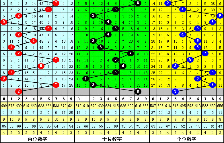 其中,号码0-9开出次数分别为:号码0开出3次、1开出3次、2开出3次、3开出3次、4开出2次、5开出2次、6开出4次、7开出4次、8开出3次、9开出3次。