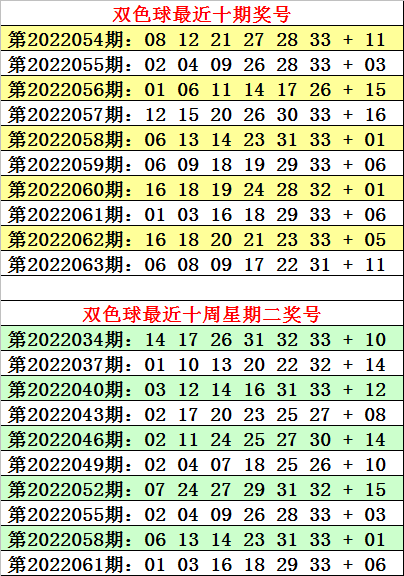 开奖回顾:双色球第2022063期开奖:06 08 09 17 22 31 + 11,其中红球和值为93,首尾间距为25,大小比为3:3,三区比为3:2:1,012路比为2:2:2,奇偶比为3:3,蓝球开出2路号码。