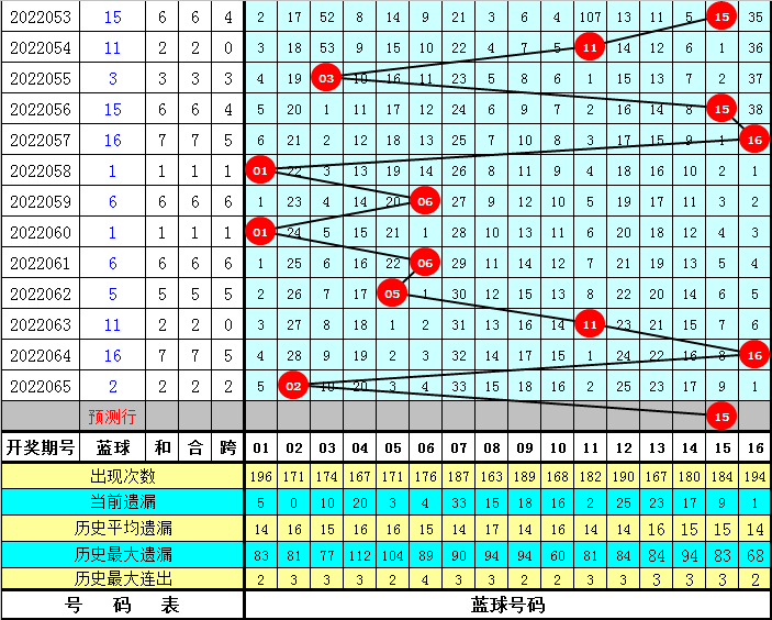 蓝球分析:最近50期蓝球号码012路比为14:16:20,最近20期蓝球号码012路比为7:6:7,上期开出2路蓝球号码02,本期蓝球注意0路号码,精选蓝球15。