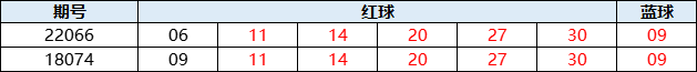 从奖号形态进行拆解,22066期红球开出1枚重号14,1组同尾号20、30,隔码06,以及斜连码27、30;蓝球开出遗漏18期的奇数09。以彩民选号的角度来看,这期奖号基本没有亮点可言,然而正是这组号码,却险些对18074期实现完美复制。18074期开出的号码为红球09 11 14 20 27 30,蓝球09;仅红球龙头一码之差即可创造历史。