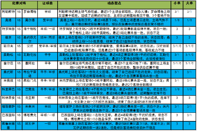 耶尔夫上轮联赛主场0-5不敌萨普斯堡,遭遇联赛4连败,状态低迷,此役主场面对目前已经连续6轮联赛不胜,但是最近3个客场都是取得平局,客战能力不错的汉坎,机构给出受平半的让步居多,对于客队还是没有十足的信心,此役建议全包;奥勒松上轮客场2-2战平海于格松,最近4场正赛取得3胜1平的好成绩,此役主场面对本赛季客场走势依旧十分低迷,最近3个客场全部输球,此役难被信任的瓦勒伦加,机构给出平手的让步,对于两队都没有倾斜,此役建议全包。