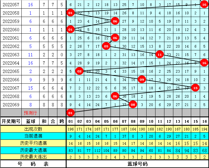 蓝球分析:上期开出小号、偶数蓝球08,最近10期蓝球大小比为4:6,本期蓝球看好再出小号;奇偶比为5:5,本期预计奇数号码反弹,独蓝参考01。