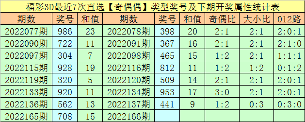 前7次出现奇偶偶类型奖号分别为:986、722、304、928、320、920、562,其下期分别开出奖号:398、367、465、812、509、953、441。