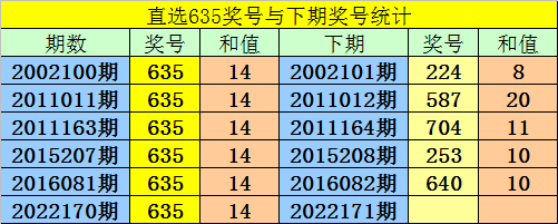 第2022170期3D奖号为:635,历史上该号码直选开出6次,下期号码分别为:224、587、704、253、640。