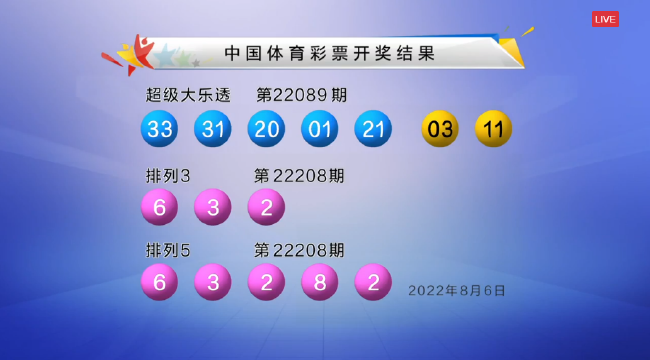 排列五第22208期最新开奖号码:6 3 2 8 2