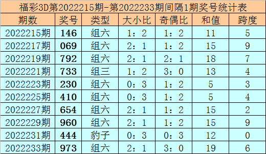 上期回顾:福彩3D第2022234期奖号:188。