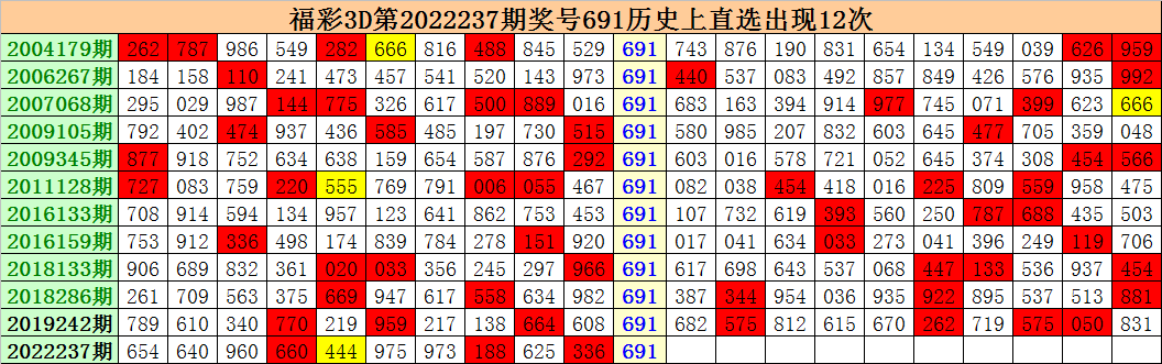 直选号码691历史上开出了12次,其下期分别开出奖号:743、440、683、580、603、082、107、017、617、387、682。
