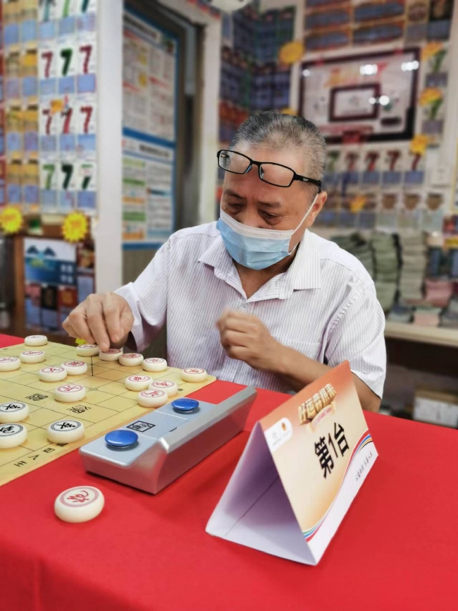 体彩店销售员郑小姐说:“能够作为比赛承办地,让我感受到被体彩中心、被棋手深深的信任。棋手来到这里,都是我的客人。我们布置好优雅素静的环境,准备好防疫物资以策安全,指引他们参赛、上传数据,对我来说,这些都很简单,但却感觉特别开心、特别有收获。我还把棋手们比赛的视频发给小孩看,他们都很感兴趣,也在家里摆了象棋摆弄下棋子,时不时大喊‘将军’,我想这也是一种文化的传承吧。”