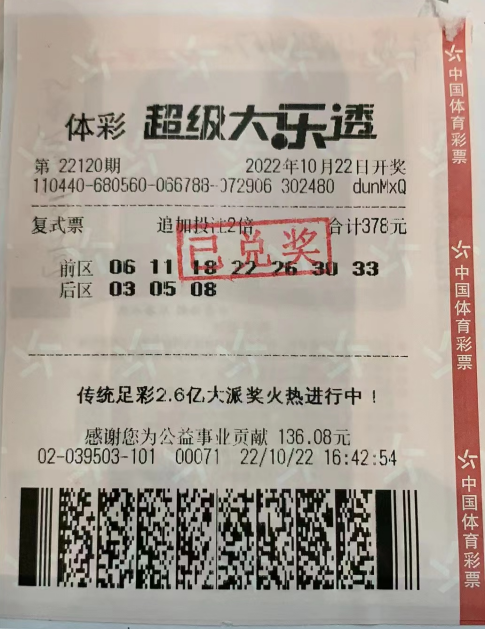 10月22日,深圳体彩4402039503实体店(店址:深圳市龙岗区南湾街道布吉佳兆业可园17栋西128商铺)中出超级大乐透2022120期追加一等奖2注。中奖者吕先生(化姓)在10月24日现身兑奖。他通过一张追加投注2倍的“7+3”复式票中得奖金共2296.31万元,贡献个人偶然所得税457.73万元。