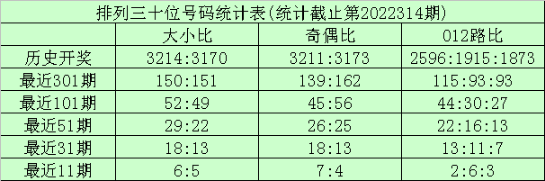 上期回顾:排列三第2022314期奖号为:715。奖号形态组六,大小比2:1,奇偶比3:0,012路0:2:1。