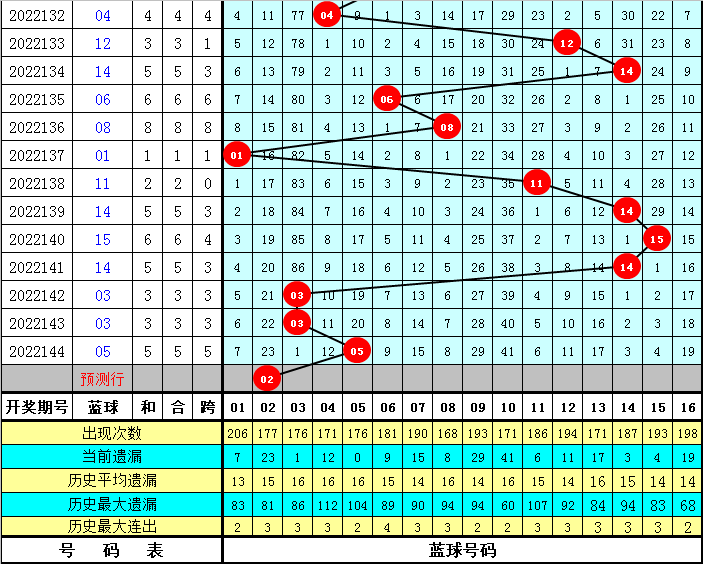 蓝球分析:上期蓝球开出号码05,为冷码蓝球,本期看好蓝球遗漏值走大,注意冷码蓝球解冻,参考蓝球号码02。