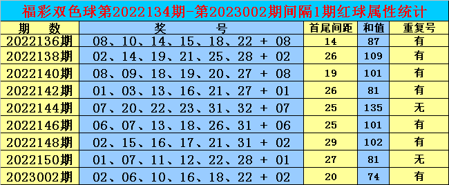开奖回顾:双色球第2023003期开奖:05 08 18 25 30 32 + 06,红球特征为:首尾间距:27,和值:118,上期开出1个重号:18。