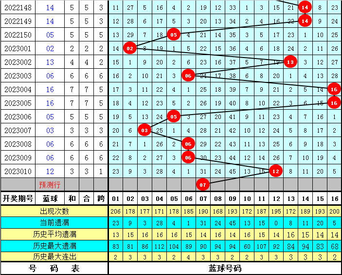 第21011期:05 10 16 23 27 33 + 14。红球三区比为2:1:3;