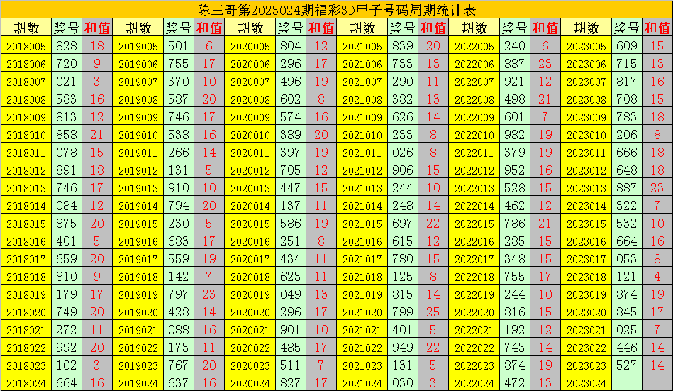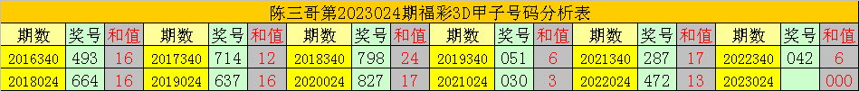 陈三哥3D第2023024期甲子号分析: