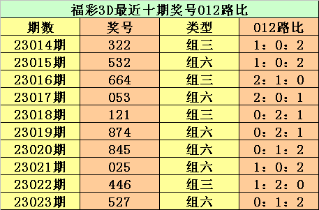 开奖回顾:第2023023期3D奖号为527。形态:组六,奇偶比2:1,大小比2:1,012路比为0:1:2。