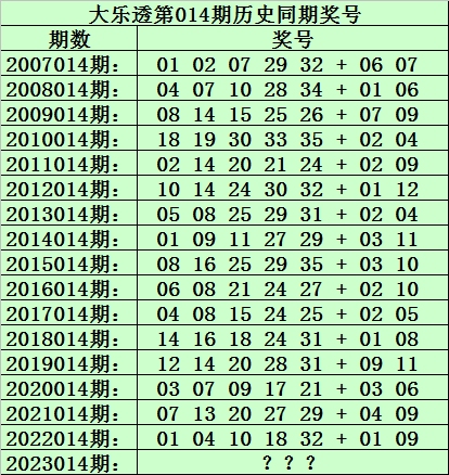 黑天鹅大乐透第2023014期历史同期奖号分析