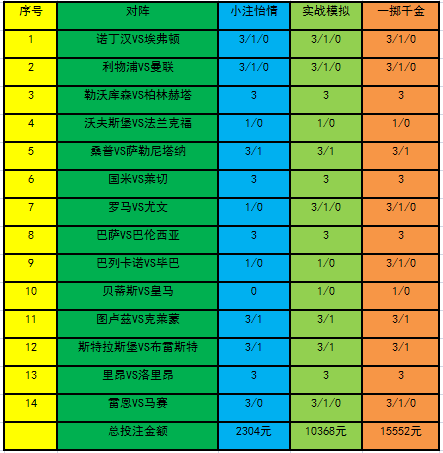 本期第1场诺丁汉VS埃弗顿、第2场利物浦VS曼联、第7场罗马VS尤文、第9场巴列卡诺VS毕巴和第14场雷恩VS马赛属于难点场次,任九尽量舍弃。