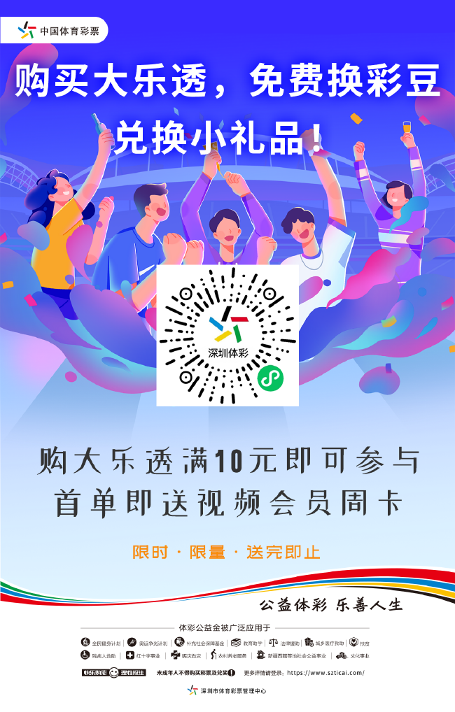活动期间(3月15日-4月15日),购彩者在深圳区域购买超级大乐透彩票单票满10元,微信搜索或扫描活动二维码登录深圳体彩益积分小程序,进入“彩票换彩豆”活动页面,按照要求输入相关信息,即可获得与购彩金额等额的彩豆,单票最高可获1000彩豆(购彩金额超过1000元的,最高只能兑换1000彩豆)。累积的彩豆可以在小程序内免费兑换视频会员、乡村振兴农产品等礼品。