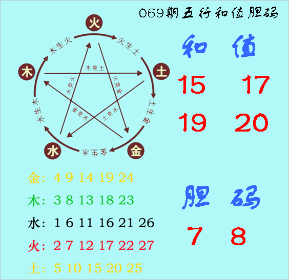 福彩3D第2023069期神算天五行和值胆码图
