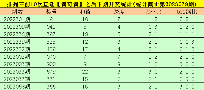 3.在前10次【偶奇偶】类型奖号开出之后,其下期奖号分别开出:111、011、377、555、488、000、900、699、711、366;