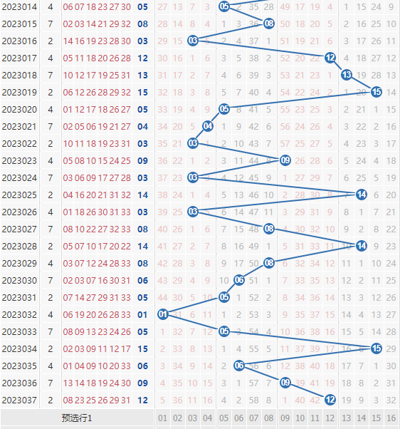 在蓝球遗漏方面,我们通常分为小遗漏蓝球(0-7期)、中遗漏蓝球(8-16期)、大遗漏蓝球(17期及以上)。大数据表明,小遗漏蓝球开出的频次最高,中遗漏蓝球其次,大遗漏蓝球则相对开出频次最低,且大概率不会连开,可以看到近期的蓝球号码均符合这一规律。