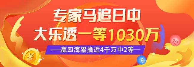 马追日:上期喜提大乐透一等狂揽1030万,近期已经6次命中大乐透一二等,揽获大乐透奖金1480万元!上期马追日看好前区奇偶比1:4,大小比3:2正确,胆码05、30+后区全小助攻命中一等奖!本期防前区开出全合组合,后区注意连码,继续努力,趁着派奖机会追加倍投争取再拿一等奖,看周六方案!