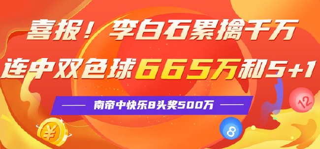 南帝双色球:上期预测中5+1,连续两期中蓝球。昨中快乐8头奖500万,数字彩累擒1911万