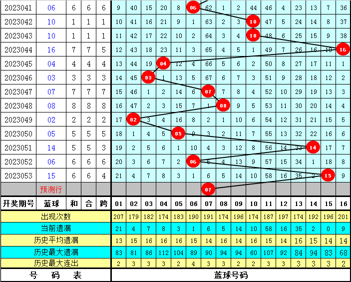 蓝球杀号:01 04 06 10 15 16