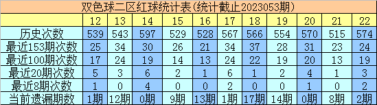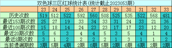 跟班双色球第2023054期红球三区比关注2:2:2。
