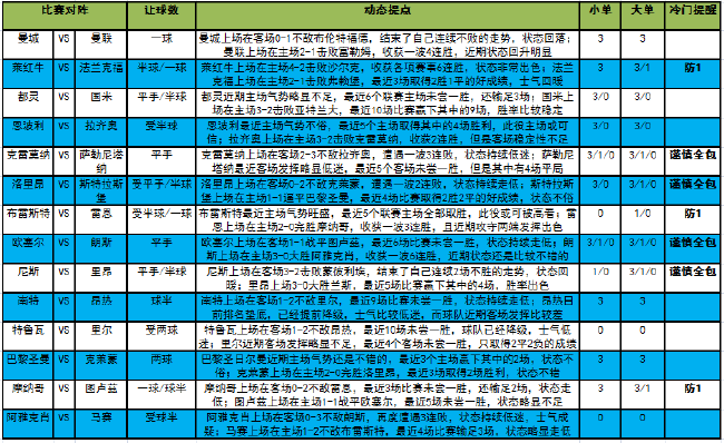 本期让步较多的比赛场次有5场。南特上场在客场1-2不敌里尔,最近9场比赛未尝一胜,状态持续走低,此役主场面对目前排名垫底,已经提前降级,士气比较低迷,而球队近期客场发挥比较差的昂热,机构给出让球半的让步居多,对于南特的主场气势还是有足够的倾斜,本场可以建议看好单3。