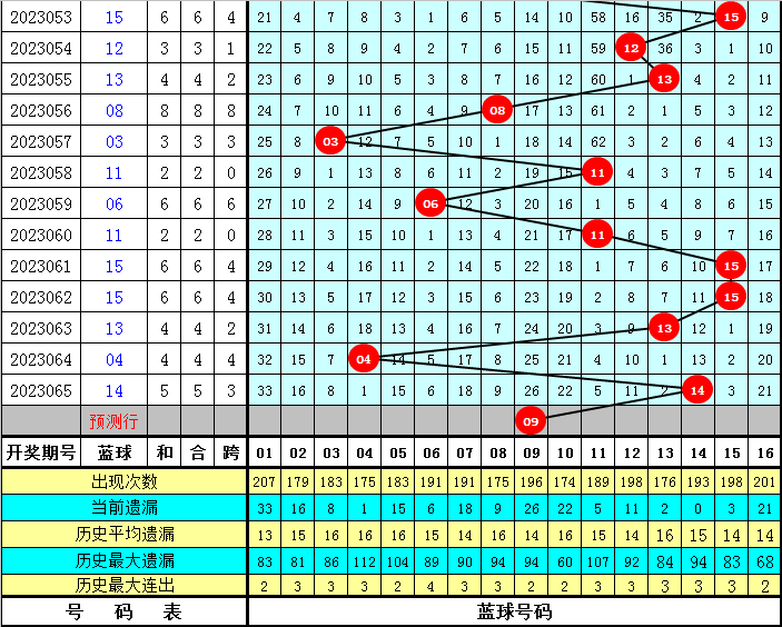 蓝球分析:去年同期蓝球09为0路蓝球,在历史同期开奖中,蓝球号码012路比为6:8:6,其中0路号码和1路号码出现比例高达70%,今年同期预计蓝球继续走0路或1路,参考号码06 07 10 12。