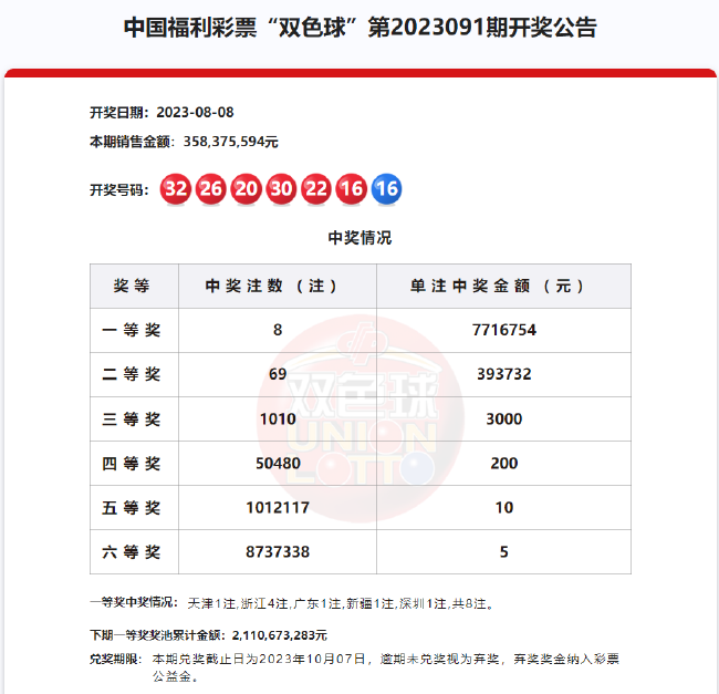 北京时间2023年8月8日,福彩双色球第23091期开奖,以下是详细开奖流程: