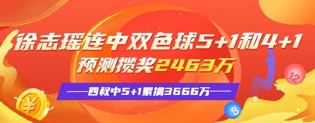 徐志瑶:上期预测中双色球5+1,105期中4+1,已预测中双色球大乐透2463万!