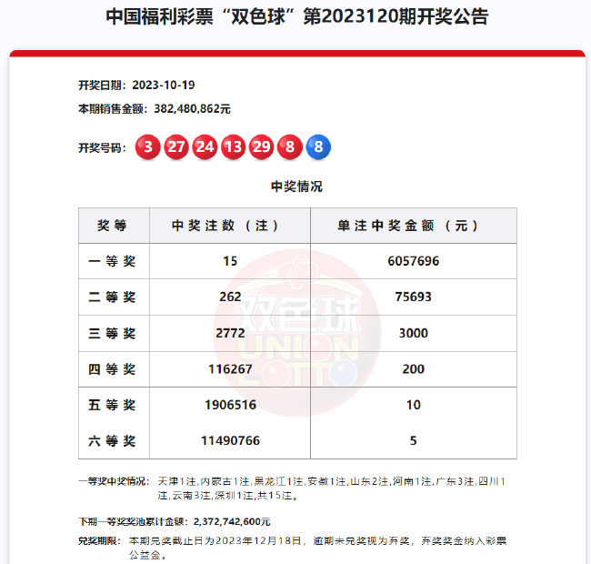 北京时间2023年10月19日,福彩双色球第23120期开奖,以下是详细开奖流程: