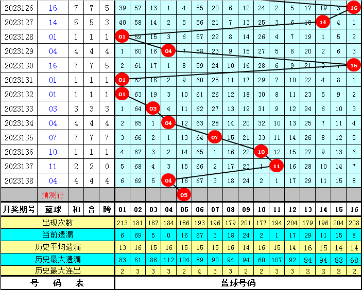 蓝球分析:上期开出蓝球号码04,号码遗漏值为3,温热蓝球号码连续开出之后,本期可以放弃,防冷码蓝球解冻,一码蓝球关注05。