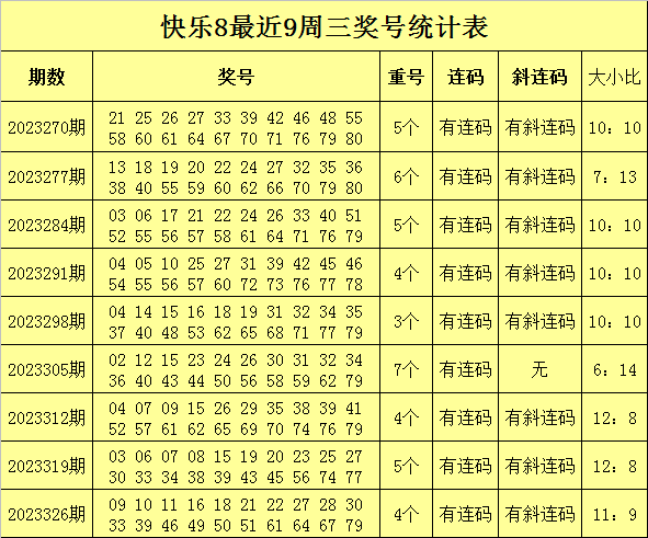 安仔最近9周三快乐8奖号分析