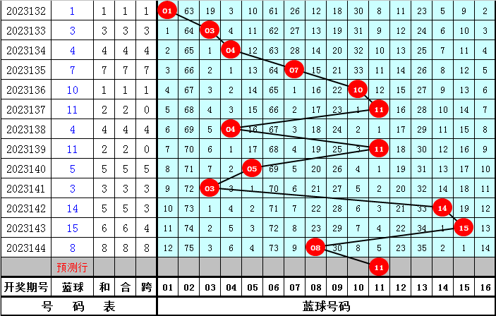 蓝球分析:最近10期蓝球号码遗漏期数分别为:28期、33期、12期、3期、1期、17期、7期、14期、19期、23期,上期开出蓝球号码08,本期看好热码蓝球出现,参考蓝球号码11。