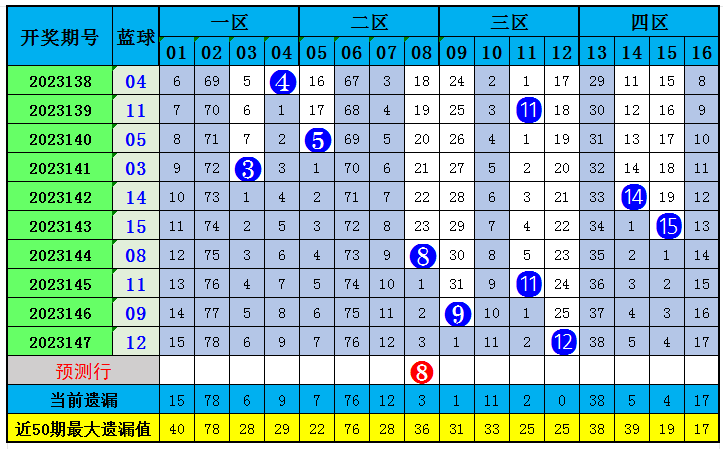 蓝球分析:蓝球上期开出大偶12,前十期蓝球奇偶比6:4,大小比6:4,大号球数量相对热出。本期预计小数号码热出,蓝球推荐一码08。