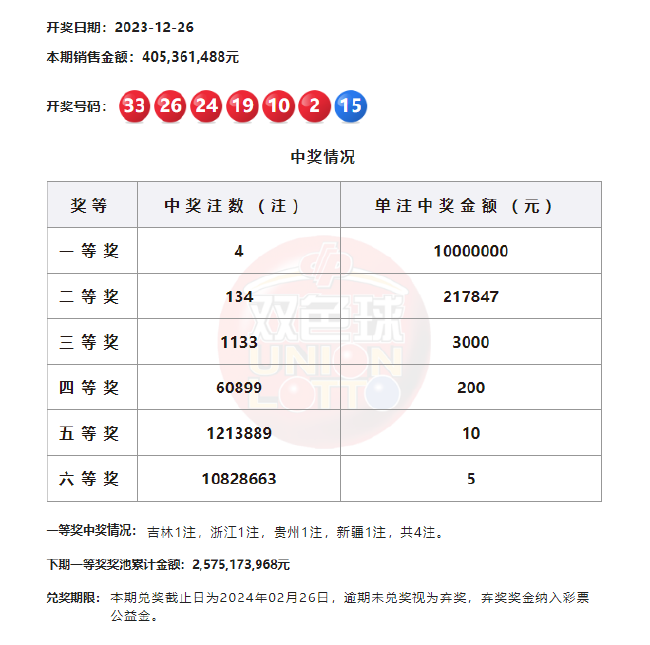 北京时间2023年12月26日,福彩双色球第23149期开奖,以下是详细开奖流程:
