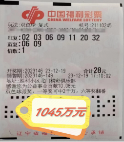 2023年即将走过,在年终岁尾之际,盘锦福彩再次传来好消息,一彩友以28元将1045万元收入囊中。