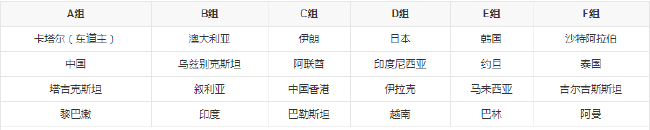 A组:卡塔尔、中国、塔吉克斯坦、黎巴嫩