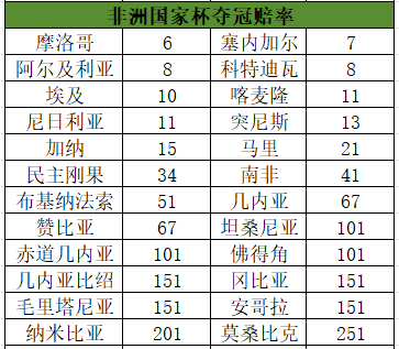 根据最新非洲杯夺冠赔率显示,2022世界杯参赛队摩洛哥、塞内加尔分别第1和第2,阿尔及利亚、科特迪瓦并驾齐驱位列第3,曾7次斩获非洲杯冠军的埃及夺冠赔率排名第5。