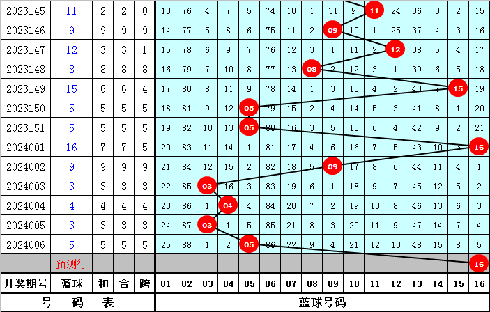 蓝球遗漏分析:上期蓝球遗漏5期开出热码05,蓝球最近9期号码遗漏期数分别为:5期、9期、0期、21期、6期、12期、16期、1期、5期,本期预计蓝球开出热码,关注蓝球号码16。