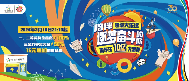 近日,国家体彩中心发布《关于开展2024年超级大乐透派奖活动的公告》,大乐透将于第24030期(3月18日开奖)开始派奖,预计持续20期,派奖总额连续4年均为10亿元。正值体彩30周年之际,本次派奖活动与去年派奖规则有一处不同,固定奖(3-9等奖)派发规则固定为50%。