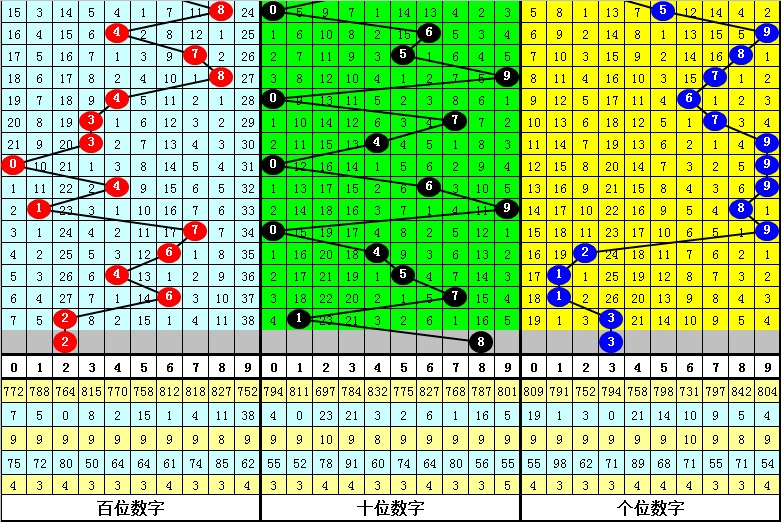 个位分析:上期个位开出奖号3,个位历史上号码3已开出794次,最近100期个位号码开出3次,上期号码遗漏26期出现。